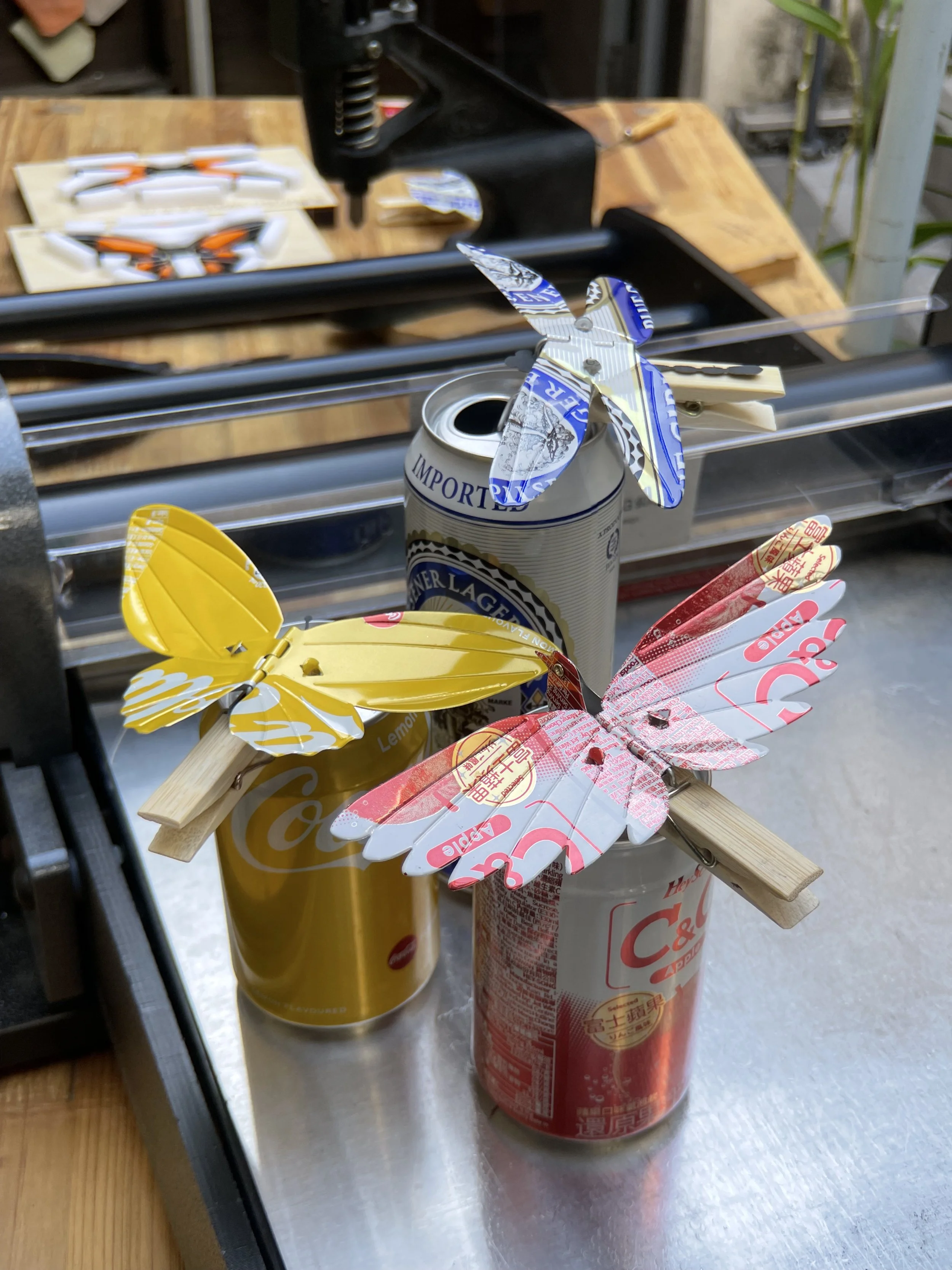 Inspired by vintage mechanical tin toy, Sodafly workshop transforms soda can into wing flapping toy in minutes. The workshop is designed to let participant experience the process of upcycling and create their own unique toy in 3 simple steps.